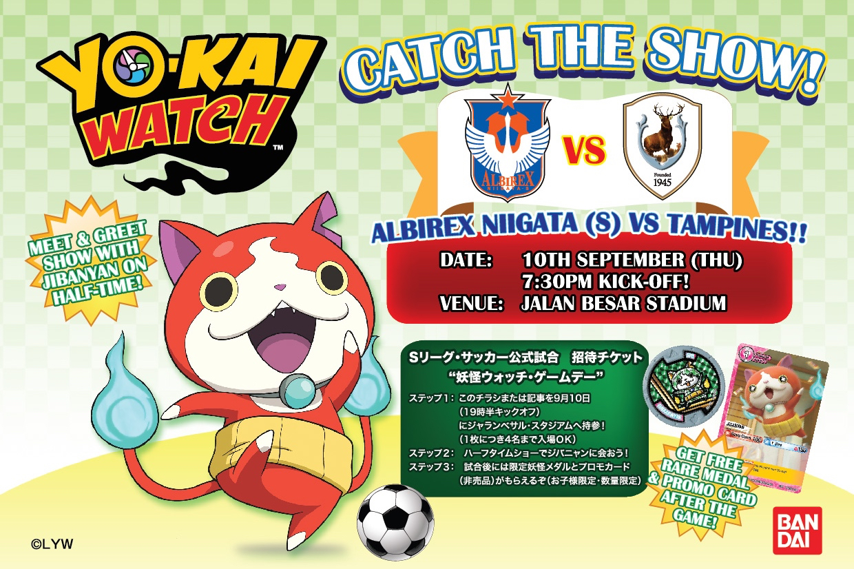 9月10日(木)開催のSリーグ第19節、タンピネス・ローバーズ戦にて『妖怪ウォッチGame Day』が開催されますので下記の通りお知らせいたします。